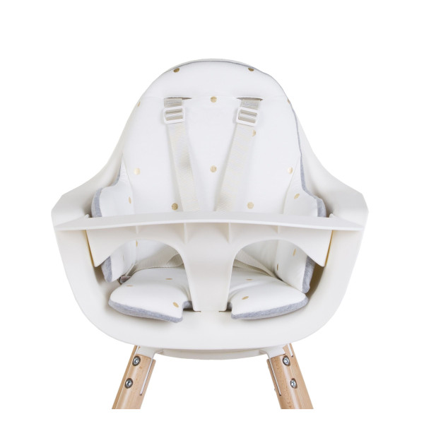 Coussin de chaise haute Jersey Gold Dots conçu pour les chaises hautes Evolu 2 et Evolu ONE.80° en jersey de coton de haute qualité. Le coussin de siège comporte des ouvertures pour insérer les sangles de la ceinture de sécurité à 5 points.