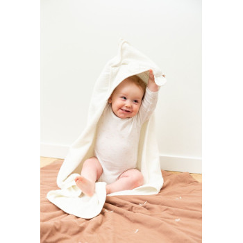 Cette cape de bain super douce et son gant de toilette assorti garderont votre bébé au chaud après son bain. L'extérieur de la cape de bain est en mousseline et comporte un ourson brodé en éponge douce. De plus, la cape de bain comporte deux adorables oreilles d’ourson.