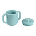 Tasse d’apprentissage en silicone 170 ml, composée de 2 anses et d’un couvercle bec amovible. Idéale pour favoriser l’autonomie des tout-petits lors des repas.