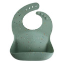 Bavoir pratique en silicone alimentaire et équipé d'un compartiment de collecte.