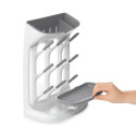 Les crochets de travers permettent que l’eau sorte des biberons, et que vous puissiez placer les petites choses comme les tétines et les sucettes sur la partie supérieure ou inférieure. Vous pouvez tout à fait démonter l’égouttoir, afin de le rincer à fond.