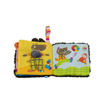 Louloup veut aller jouer dehors avec ses amis, mais avant de sortir, il faut s’habiller. 4 pages à découvrir avec plein d’activités à toucher et sonores.