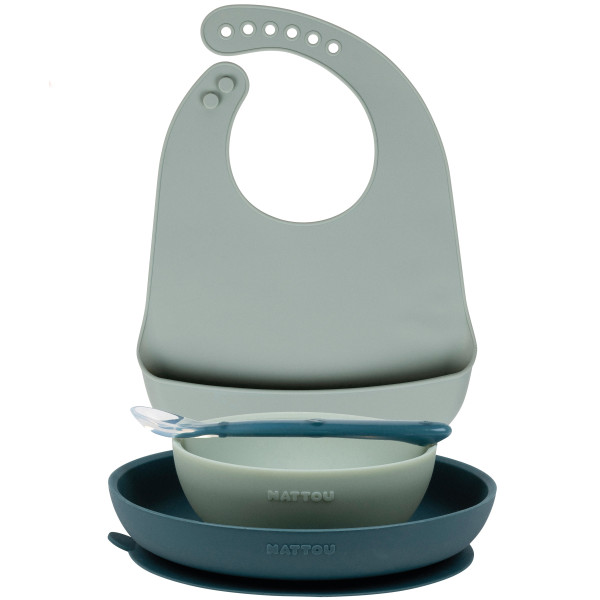 Nattou set repas silicone avec bavoir 4 pièces vert 876803