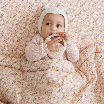 Couverture douce et respirante avec quatre épaisseurs respirantes de coton certifié GOTS.