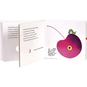 La petite chenille affamée décide de s'y glisser pour se rassasier... mais la guêpe n'est pas d'accord. Et ainsi de suite... Notre petite chenille verte trouvera-t-elle de quoi manger ?