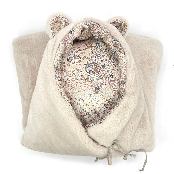 Intérieur en coton Liberty. Extérieur en tissu polaire beige.