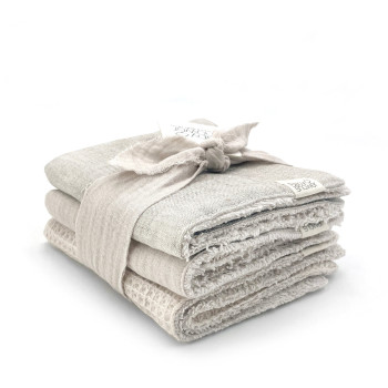 Ensemble de 3 serviettes qui vous aide à nettoyer le visage de votre bébé ou pour le change.