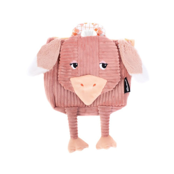 Vêtu de son plus beau velours côtelé rose, ce sac doudou autruche accompagnera les petios dans leurs premières balades au parc ou pour aller à l’école !