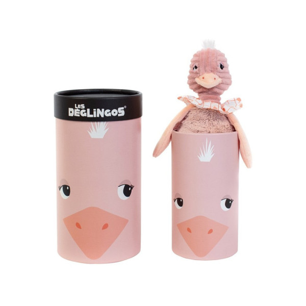 La peluche Pomelos l'autruche est présentée dans une boîte cadeau pour la déco ou à réutiliser avec un maximos de créativité !