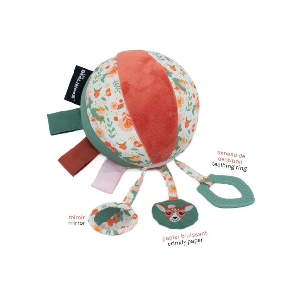 Souple et adaptée aux petites mains ! Une petite balle en tissu toute moelleuse et facile à attraper pour les petites manos! C'est l'éclate assurée grâce à tous ces accessoires sonores et tactiles !