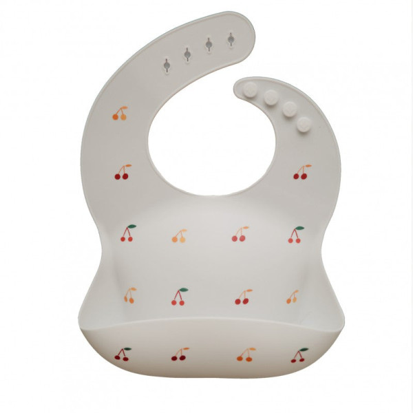 Bavoir pratique en silicone alimentaire et équipé d'un compartiment de collecte.