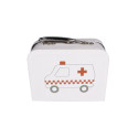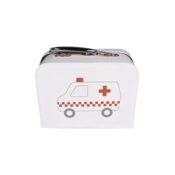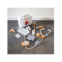 Comprend : presse-papiers, pilulier, seringue, ciseaux, stéthoscope, médicaments, 2 thermomètres, pommade, tensiomètre, marteau et une mallette.