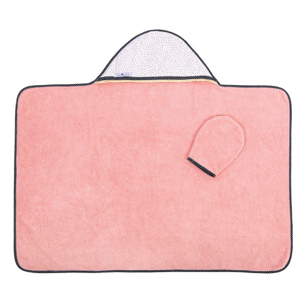 Cette cape de bain en matière éponge et finition avec biais permet d’envelopper complètement votre bout’chou après son bain.