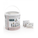 L’ensemble composé de 50 blocs de bois avec différentes formes, couleurs, symboles et motifs est livré dans une boîte de rangement pratique avec poignée. Facile à stocker et à emporter. Dans la boîte se trouve un livret avec des 'plans de construction'.