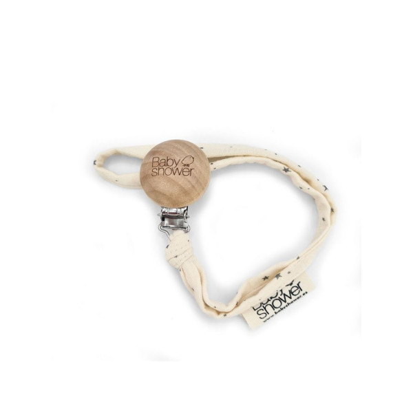 Ruban à fixer sur la rondelle de la sucette. Avec fermeture à pince.