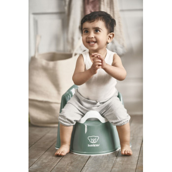 Votre enfant peut s'asseoir, se détendre et prendre tout le temps dont il a besoin sur ce pot confortable avec des contours doux, un dossier haut et des accoudoirs de soutien. La bande de caoutchouc en dessous maintient le pot bien en place sur le sol, et la hauteur du pot permet à votre enfant de s'asseoir et de se lever facilement.