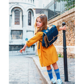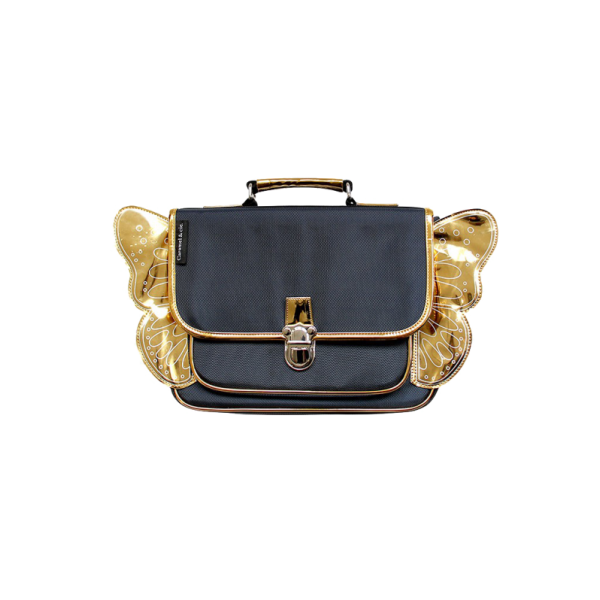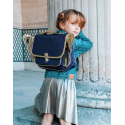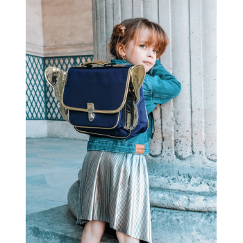 Ce joli cartable bleu nuit orné de petites ailes dorées est solide grâce à ses coutures renforcées et ergonomique grâce à ses bretelles ajustables molletonnées et alvéolées qui assurent un maximum de confort à votre enfant.