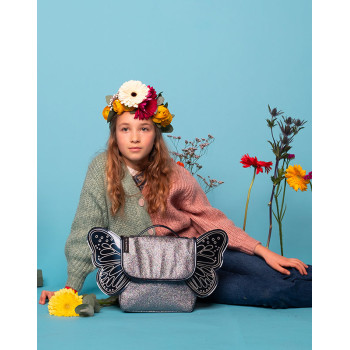 Notre mini sac à dos Papillon Paillettes Bleu Nuit accompagnera votre enfant lorsqu’elle volera avec grâce d’une activité à l’autre, tout au long de la journée !