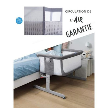 Pour ses premiers mois, vous aurez la possibilité de fixer solidement le Chicco Next 2 Me Air à votre lit, en abaissant une des parois. Ainsi, votre bébé se sentira en sécurité et vous pourrez le surveiller efficacement sans perturber son sommeil. Vous aurez la possibilité de monter ou abaisser le berceau sur six hauteurs différentes qui s’adaptent à la grande majorité des lits d’adultes. Le matelas fourni est respirant pour assurer à votre nourrisson un repos des plus agréable. En cas de déplacement hors de votre maison, vous pourrez ranger le berceau dans le sac de transport dédié, après l’avoir plié.