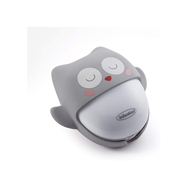 2. Il suffit de retirer la veilleuse du chargeur mural. Insérer la veilleuse dans l’étui chouette, souple et de forme douce arrondie et la remettre à l’enfant qui peut la transporter facilement n’importe-où avec lui et en toute sécurité.