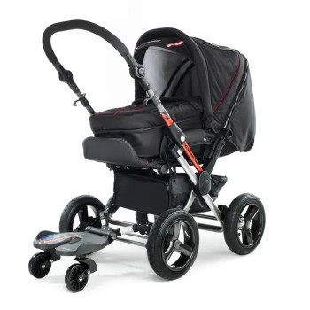 Cette planche de poussette s'adapte à n'importe quelle poussette en raison de sa construction unique qui vous offre des possibilités de réglage presque infinies. Les bras sont réglables en largeur, longueur et hauteur. Les pinces à dégagement rapide permettent un montage et un retrait faciles de votre poussette. La plate-forme est dotée d'une surface antidérapante et la suspension assure une conduite en douceur.