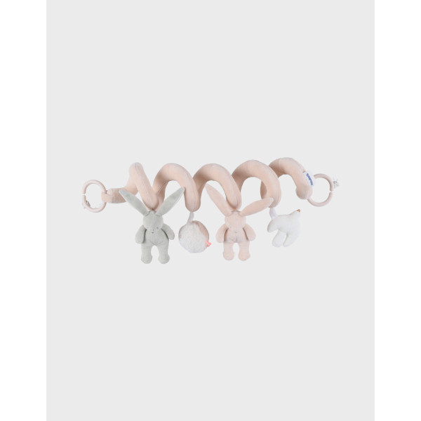 Découvrez la spirale d’activités. Conçue pour offrir une expérience de jeu stimulante, pratique et totalement adaptée aux tout-petits, elle s’installe en un geste et accompagne bébé partout. Accrochée au lit, au parc, au siège auto du groupe 0 ou à la poussette, elle devient un véritable compagnon d’exploration, idéal pour divertir bébé tout en soutenant son développement.