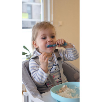 design ergonomique : bords hauts facilitant le remplissage de la cuillère et encourageant l’autonomie.