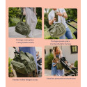 Grâce à ses attaches poussette et son système de glissière pour valise, ce sac s’adapte autant aux déplacements quotidiens qu’