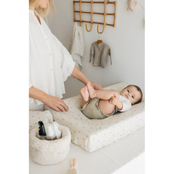 Un petit panier aussi mignon que fonctionnel, pensé pour accompagner les gestes du quotidien tout en apportant une note chaleureuse et naturelle à l’univers de bébé.