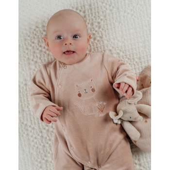 Ouverture par l’avant : grâce aux boutons-pression situés à l’avant, habiller bébé devient simple et rapide, sans avoir à le retourner.