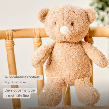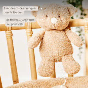 Apportez douceur, réconfort et sérénité aux premiers mois de votre bébé grâce à la peluche musicale ours de Nattou. Avec son tissu teddy ultra doux, et sa forme attendrissante, elle devient vite un compagnon rassurant au quotidien.