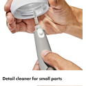 Cette brosse unique dispose d'une tête de brosse innovante combinant deux types de poils : un pour un nettoyage en douceur et l'autre pour un brossage sérieux, permettant ainsi de nettoyer en profondeur tout en respectant les besoins de votre bébé.