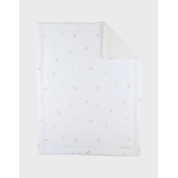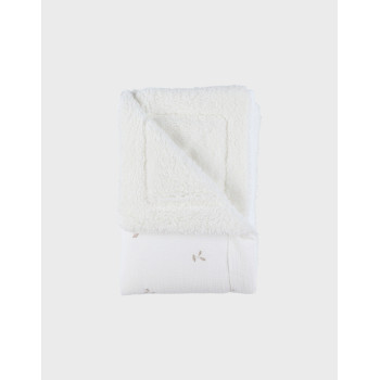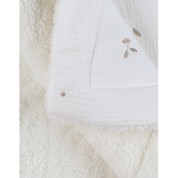 Matières naturelles : un côté en gaze de coton BIO écrue, un côté en sherpa blanche, parfaits pour la peau sensible de bébé