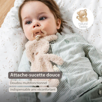 Fonction 2 en 1 : peluche câline + attache-tétine