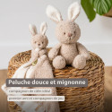 Impossible de résister à ce lapin tout en tendresse, pensé pour accompagner votre bébé dans ses premières découvertes. Avec son tissu teddy ultra doux, ses longues oreilles moelleuses et son visage attendrissant, cette peluche invite aux câlins, aux jeux et aux moments de réconfort.