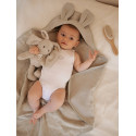 Confectionné en éponge gaufrée d’origine naturelle, composée de bambou et de coton, il garantit une absorption optimale tout en préservant la délicatesse de la peau. La cape avec capuche et petites oreilles ajoute une note ludique et chaleureuse, tandis que le gant assorti permet un nettoyage tout en douceur.