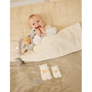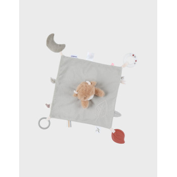 Un doudou tendre, pratique et sensoriel, pensé pour devenir le compagnon inséparable de bébé au quotidien.