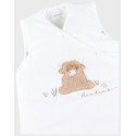 Pensée comme un véritable cocon de douceur, cette gigoteuse 70cm dans une teinte écru accompagne les bébés de 1 à 6 mois pour leurs premiers sommeils paisibles. Joliment décorée d’une broderie du personnage Fluffy en insert de fausse fourrure, elle associe confort, esthétisme et praticité.