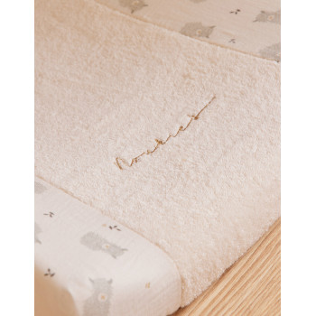 La housse de coussin à langer écru, issue du thème Fluffy, Orso & Lily, est confectionnée en éponge épaisse pour offrir à bébé confort et douceur à chaque change. Son tissu absorbant et moelleux rend le moment du soin plus agréable, tout en assurant une hygiène optimale.