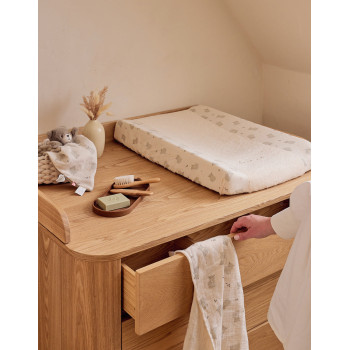 Ornée d’une broderie délicate inspirée de la nature, elle apporte une touche décorative et tendre à l’espace de change. Pratique et résistante, elle conserve sa douceur lavage après lavage.