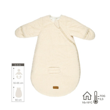 Sa valeur TOG de 2,5 en fait un choix parfait pour les nuits entre 16 et 20 °C. La fermeture éclair de bas en haut, protégée par un rabat, permet un change facile, sans réveiller bébé. Sa coupe ample offre une vraie liberté de mouvement, tandis que les manches longues et les mitaines intégrées protègent efficacement du froid.