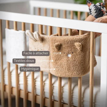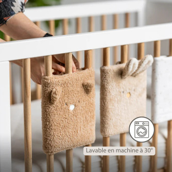 Les protections rembourrées se fixent facilement à l’aide de bandes auto-agrippantes autour de deux ou trois barreaux, selon l’écartement. Leur matière douce et agréable au toucher crée un cocon chaleureux et moelleux dans le lit, tout en ajoutant une touche élégante et pratique au quotidien.