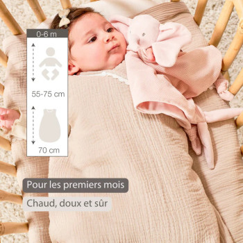 Cette gigoteuse fait partie de la collection Fanfan, une ligne pleine de douceur, de tendresse et de personnages attachants. Conçue pour créer un univers apaisant autour de bébé, elle allie matières naturelles, design raffiné et fonctionnalité au quotidien.