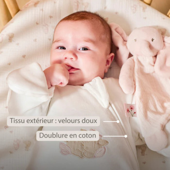Faisant partie de la collection Fanfan, cette gigoteuse apporte une touche de douceur magique à l’univers de bébé, avec ses personnages attendrissants et ses matières moelleuses. Un design élégant, intemporel et parfaitement pensé pour le confort des tout-petits… et la tranquillité des parents.