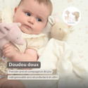 Ce doudou en forme de biche accompagnera votre bébé dès ses premiers instants avec douceur et réconfort. Confectionné dans un délicat mélange de coton tétra et de velours ultra doux, il offre une sensation apaisante qui rassure même les nouveau-nés et les bébés prématurés.
