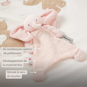 Ce doudou fait partie de la collection Fanfan de Nattou, un univers empreint de tendresse, de douceur et de design intemporel. Les personnages adorables de cette collection accompagnent bébé avec chaleur et poésie, tout en ajoutant une touche délicate à l’univers de la chambre.