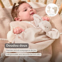 Les deux cordons pratiques permettent d’y fixer une tétine, pour qu’elle reste toujours à portée de main. Un doudou aussi fonctionnel qu’émouvant, à offrir ou à s’offrir, pour un cadeau de naissance plein de tendresse.