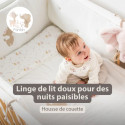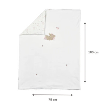 Fabriqué en gaze de coton 100 % avec une finition en velours ultra doux, ce plaid allie confort, élégance et praticité. Son motif tendre et sa couleur blanche neutre s’intègrent parfaitement dans toutes les décorations de chambre de bébé.