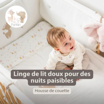 Issu de la collection Fanfan de Nattou, ce plaid accompagne votre enfant avec une touche de magie, de tendresse et de style intemporel grâce à ses petits éléphanteaux et faons adorables.