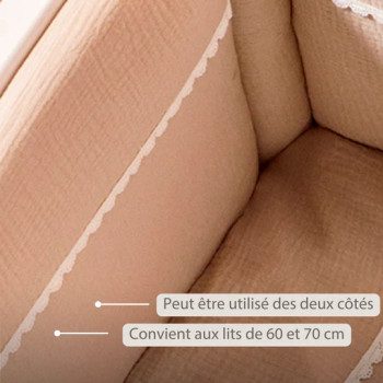 Fabriqué en velours 100 % doux, ce tour de lit assure un confort maximal et un maintien sécurisé pendant le sommeil. Sa couleur sable neutre et apaisante s’harmonise facilement avec toutes les décorations de chambre, tandis que son design réversible ajoute une touche pratique et esthétique.